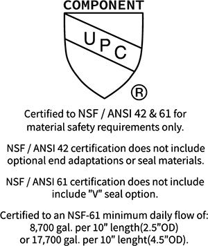 - Component materials comply with US FDA and EU regulations for safe use with food products and potable water